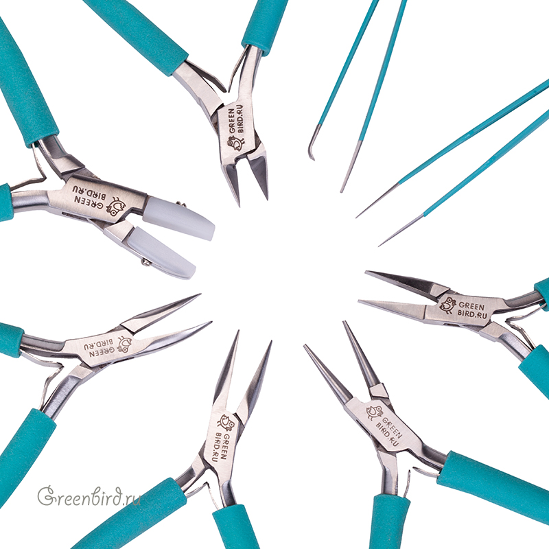 Набор из 8 инструментов в пенале из искусственной кожи для создания бижутерии. Инструменты имеют тонкие рабочие концы, что позволяет выполнять мелкие и аккуратные детали при работе с фурнитурой и проволокой. Размер инструментов: 11,5 x 5,5 см.