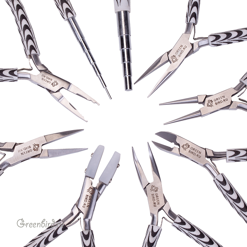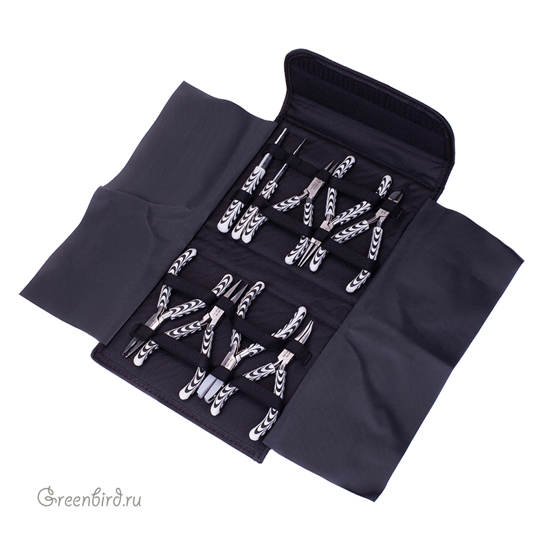 Набор из 9 инструментов в текстильном пенале для создания бижутерии. Инструменты имеют тонкие рабочие концы, что позволяет выполнять аккуратные и мелкие детали при работе с фурнитурой и проволокой. Размер инструментов: 13,5 x 5,5 см.