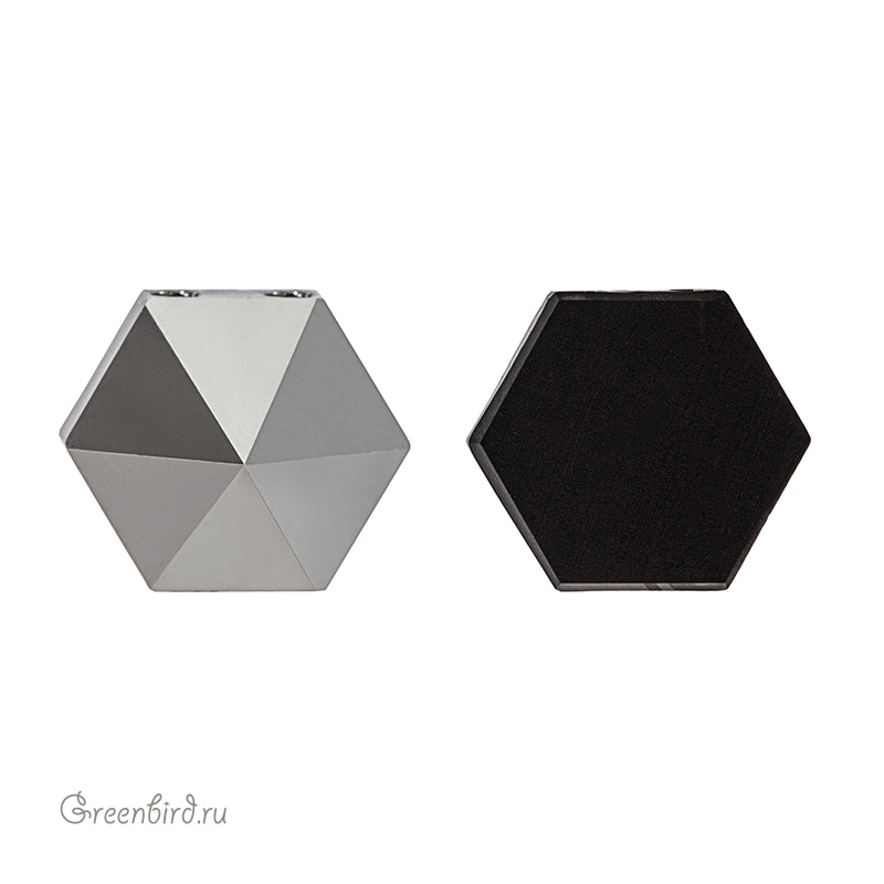 Swarovski 5060 Бусина Hexagon Spike Bead — бусина «Шестиугольный шип». Размер: 7,5 мм, 2 параллельных отверстия: 0,9 мм. Цвет: черный с эффектом "Гематит"/ Jet Hematite (#280HEM). Материал: стекло. Производство: Австрия. Цена указана за 1 шт.