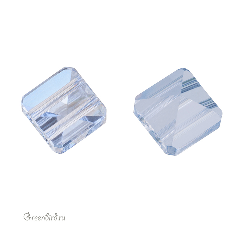 Swarovski 5061 Square Spike Bead — бусина «Квадратный шип». Размер: 7,5 мм, 2 параллельных отверстия. Цвет: прозрачный с эффектом "Голубая дымка" / Crystal Blue Shade (#001BLSH). Материал: стекло. Производство: Австрия. Цена указана за 1 шт.