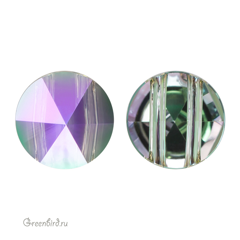 Swarovski 5062 Round Spike Bead — бусина «Круглый шип». Размер: 7,5 мм, 2 параллельных отверстия. Цвет: прозрачный с эффектом "Райское сияние" / Crystal Paradise Shine (#001PARSH). Материал: стекло. Производство: Австрия. Цена указана за 1 шт.