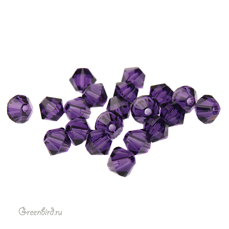Swarovski 5328 Xilion Bicone Bead — биконусы или двуконусные бусины с фирменной огранкой Xilion. Эта огранка создаёт максимальный блеск за счёт дополнительных фасеток на гранях. Компонент для бижутерии и вышивки. Размер: 4 мм, отверстие: 0,8 мм. Цвет: пурпурный вельвет / Purple Velvet (#277). Материал: стекло. Производство: Австрия. Цена указана за 20 шт.