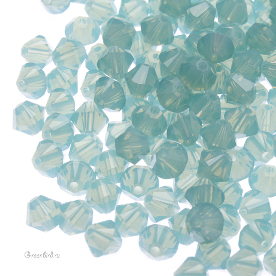 Swarovski 5328 Xilion Bicone Bead — биконусы или двуконусные бусины с фирменной огранкой Xilion. Эта огранка создаёт максимальный блеск за счёт дополнительных фасеток на гранях. Компонент для бижутерии и вышивки. Размер: 4 мм, отверстие: 0,8 мм. Цвет: светло-морской опал / Pacific Opal (#390). Материал: стекло. Производство: Австрия. Цена указана за 20 шт.