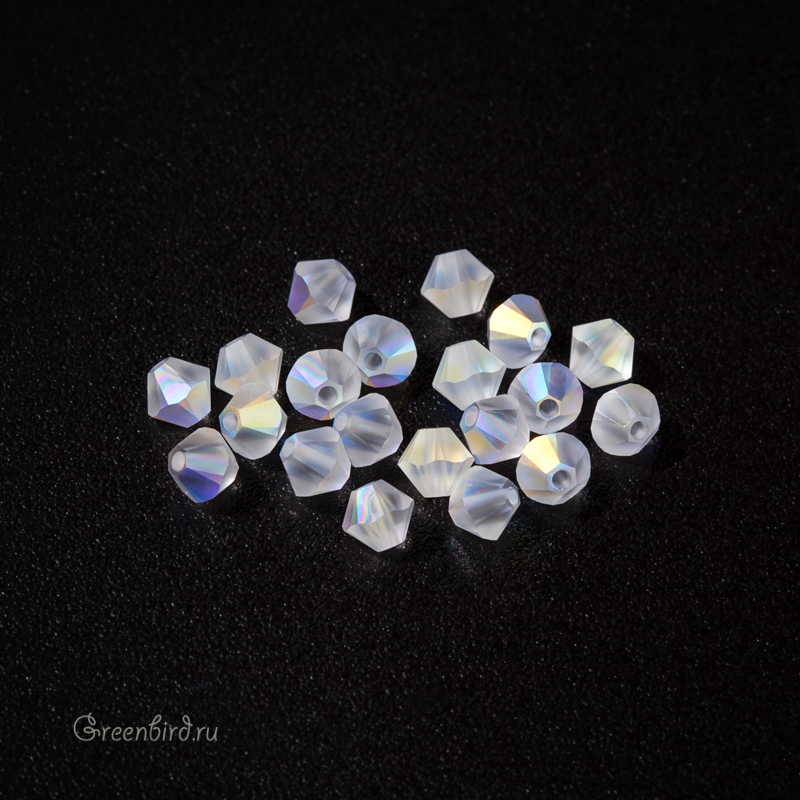 Swarovski 5328 Xilion Bicone Bead — биконусы или двуконусные бусины с фирменной огранкой Xilion. Эта огранка создаёт максимальный блеск за счёт дополнительных фасеток на гранях. Компонент для бижутерии и вышивки. Размер: 4 мм, отверстие: 0,8 мм. Цвет: прозрачный матовый с радужным эффектом / Crystal Matt Finish Aurore Boreale (#001MATAB). Материал: стекло. Производство: Австрия. Цена указана за 20 шт.