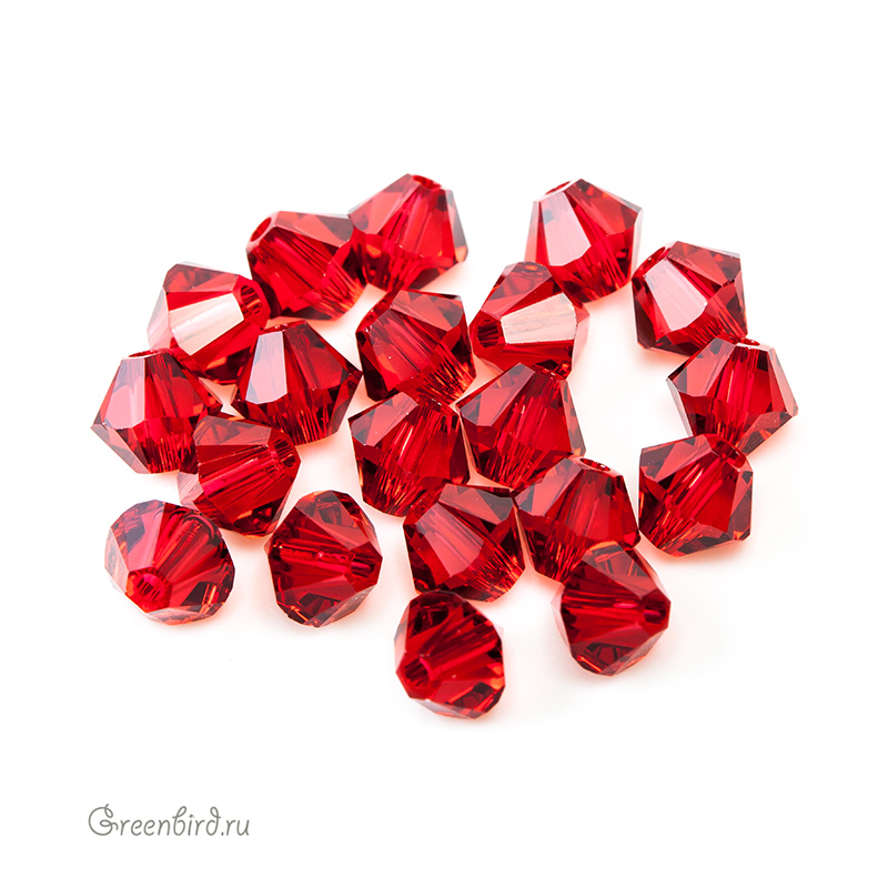 Swarovski 5328 Xilion Bicone Bead — биконусы или двуконусные бусины с фирменной огранкой Xilion. Эта огранка создаёт максимальный блеск за счёт дополнительных фасеток на гранях. Компонент для бижутерии и вышивки. Размер: 4 мм, отверстие: 0,8 мм. Цвет: алый / Scarlet (#276). Материал: стекло. Производство: Австрия. Цена указана за 20 шт.