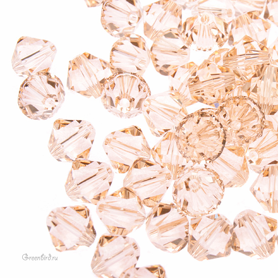 Swarovski 5328 Xilion Bicone Bead — биконусы или двуконусные бусины с фирменной огранкой Xilion. Эта огранка создаёт максимальный блеск за счёт дополнительных фасеток на гранях. Компонент для бижутерии и вышивки. Размер: 6 мм, отверстие: 0,9 мм. Цвет: светло-персиковый / Light Peach (#362). Материал: стекло. Производство: Австрия. Цена указана за 10 шт.