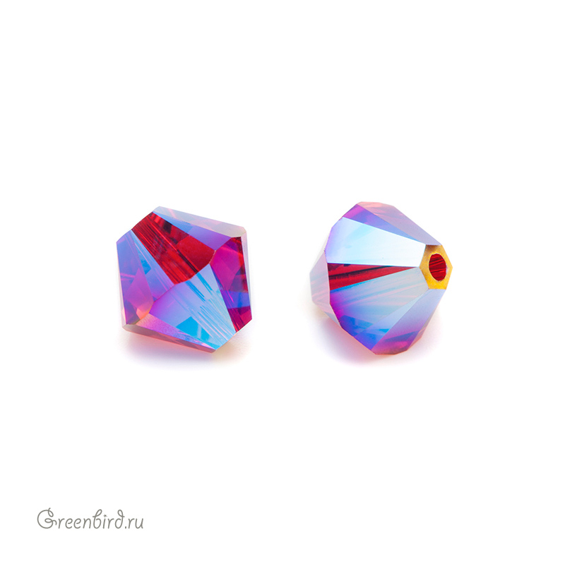 Swarovski 5328 Xilion Bicone Bead — биконусы или двуконусные бусины с фирменной огранкой Xilion. Эта огранка создаёт максимальный блеск за счёт дополнительных фасеток на гранях. Компонент для бижутерии и вышивки. Размер: 8 мм, отверстие: 1,2 мм. Цвет: сиам с радужным эффектом с двух сторон кристалла / Siam AB 2X (#208AB2). Материал: стекло. Производство: Австрия. Цена указана за 1 шт.