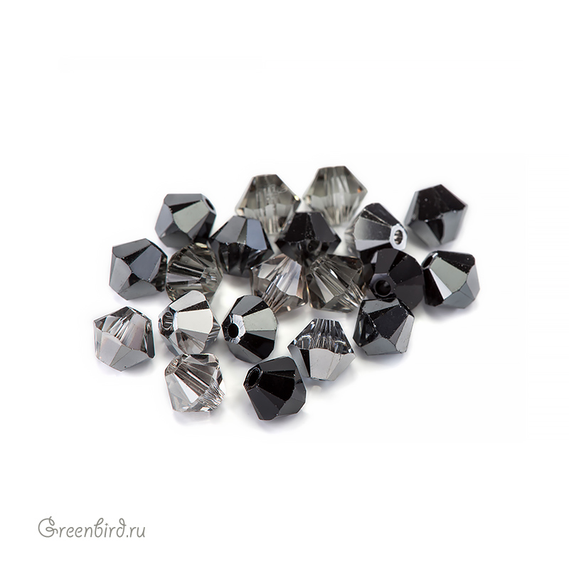 Swarovski 5328 Xilion Bicone Bead — биконусы или двуконусные бусины с фирменной огранкой Xilion. Эта огранка создаёт максимальный блеск за счёт дополнительных фасеток на гранях. Компонент для бижутерии и вышивки. Размер: 4 мм, отверстие: 0,8 мм. Цвет: черный микс / Black (#MIX13). Материал: стекло. Производство: Австрия. Цена указана за 20 шт.