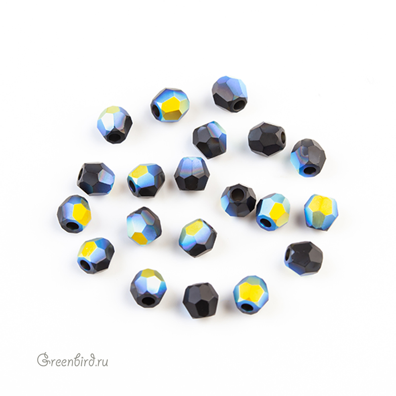 Swarovski 5000 Round Bead — бусина круглая граненая. Компонент для бижутерии и вышивки. Размер: 3 мм, отверстие: 0,9 мм. Цвет: черный матовый с радужным эффектом / Jet Matt Finish Aurore Boreale (#280MATAB). Материал: стекло. Производство: Австрия. Цена указана за 20 шт.