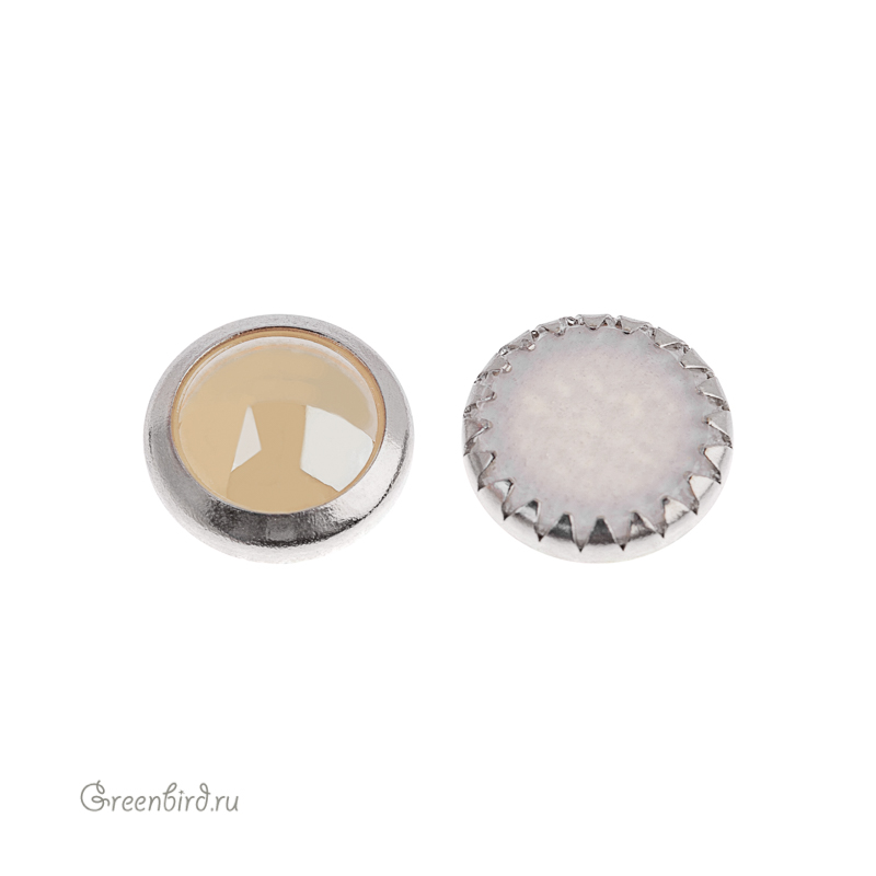 Swarovski 2080/H Framed Cabochon Flatback HotFix — кристалл с плоским основанием горячей фиксации в металлической оправе (клеевой страз). Форма: круглый кабошон. Размер: SS34 (7,07-7,27 мм). Цвет: прозрачный с эффектом "Золотистая дымка" с фольгированием / Crystal Golden Shadow Foiled (#001GSHA). Материал: стекло. Производство: Австрия. Цена указана за 1 шт.