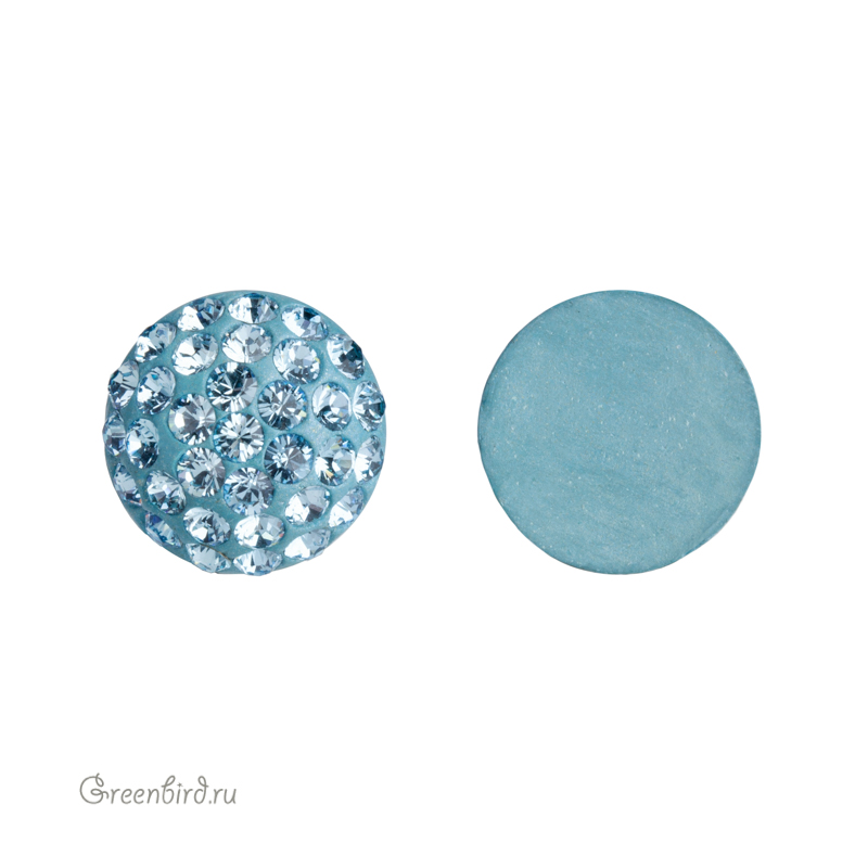 Swarovski 86601 BeCharmed Pave Cabochon — кабошон с кристальным паве. Размер: 9,8-10,1 мм, высота 4,35-4,45 мм. Цвет: аквамарин с фольгированием / Aquamarine Foiled (#202). Материал: стекло, ювелирная смола (глина). Производство: Австрия. Цена указана за 1 шт.