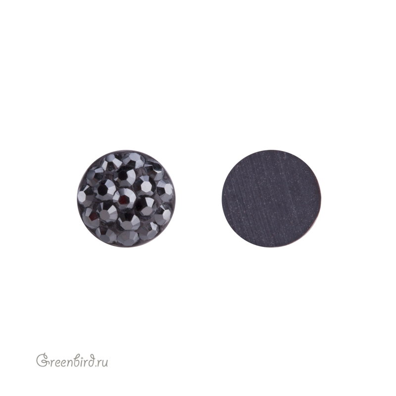 Swarovski 86601 BeCharmed Pave Cabochon — кабошон с кристальным паве. Размер: 6 мм, высота 2,1-2,2 мм. Цвет: черный с эффектом "Гематит" без фольги / Jet Hematite Unfoiled (#280HEM). Материал: стекло, ювелирная смола (глина). Производство: Австрия. Цена указана за 1 шт.
