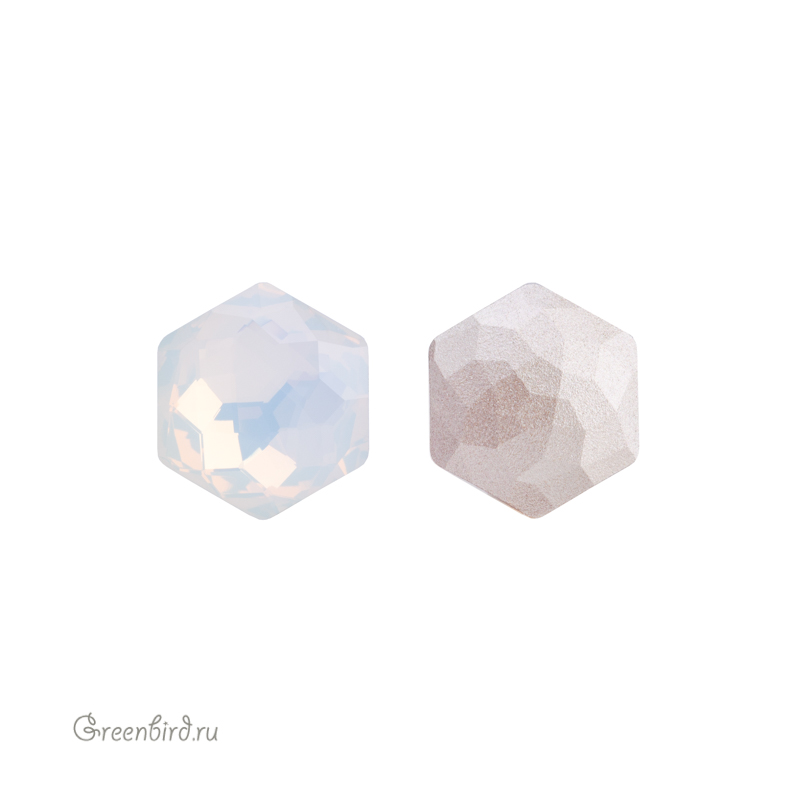 Swarovski 4683 Thin Hexagon Fancy Stone — кристалл шестиугольной формы (гексагон) с выразительной двусторонней огранкой. Компонент для бижутерии и вышивки. Размер: 10 х 11,2 мм. Цвет: белый опал с фольгированием / White Opal Foiled (#234). Материал: стекло. Производство: Австрия. Цена указана за 1 шт.