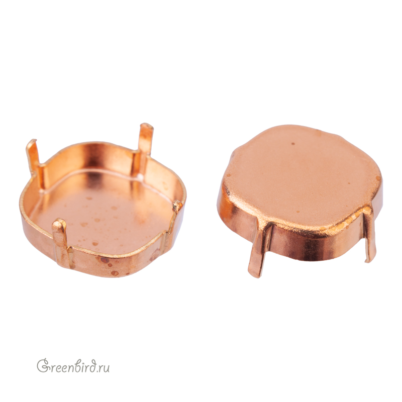 Закрытая оправа без отверстий для кристаллов Swarovski – 4483 Thin Cushion Fancy Stone. Размер: 14 мм, металл: томпак (разновидность латуни) без покрытия. Технические, подходят для пайки. Допускается неоднородность цвета. В разных партиях цвет может варьироваться от светло-золотого к медному. Цена указана за 1 шт.