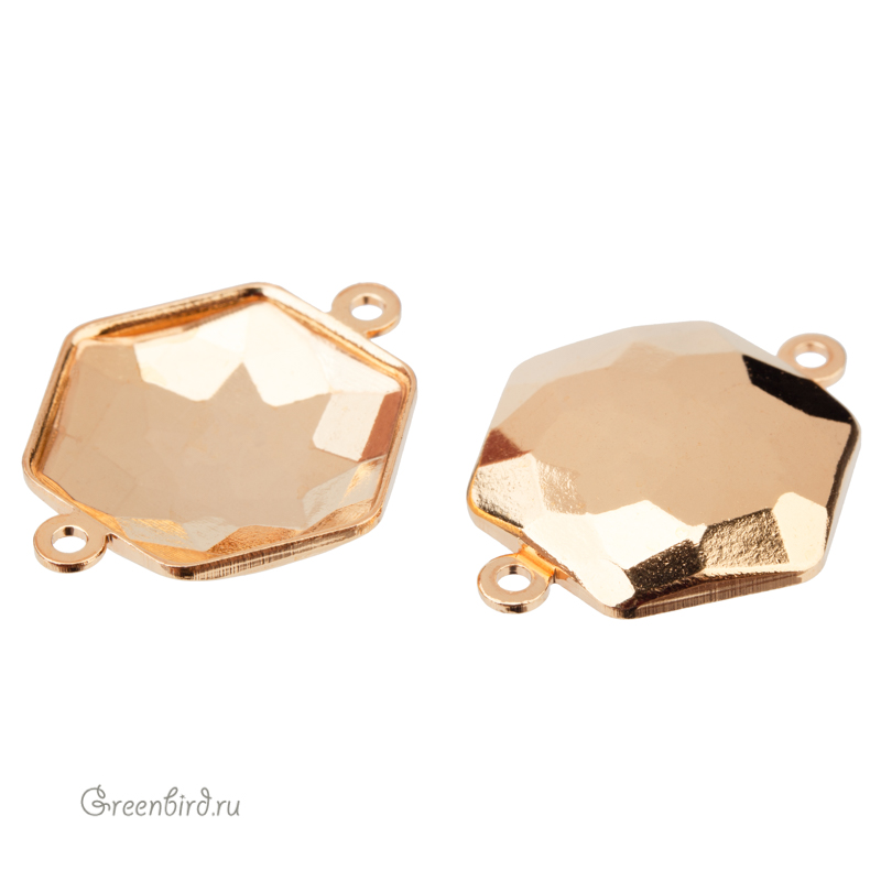 Оправа-коннектор для кристаллов Swarovski – 4683 Thin Hexagon Fancy Stone. Размер: 14 х 15,8 мм, металл: томпак (разновидность латуни), покрытие: золото. Цена указана за 1 шт.