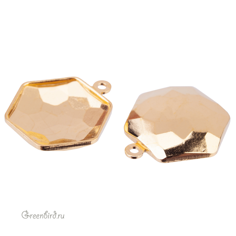 Оправа-подвеска для кристаллов Swarovski – 4683 Thin Hexagon Fancy Stone. Размер: 14 х 15,8 мм, металл: томпак (разновидность латуни), покрытие: золото. Цена указана за 1 шт.