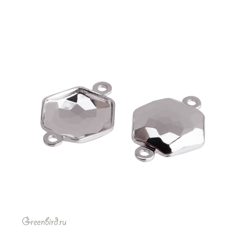 Оправа-коннектор для кристаллов Swarovski – 4683 Thin Hexagon Fancy Stone. Размер: 10 х 11,2 мм, металл: томпак (разновидность латуни), покрытие: родий. Цена указана за 1 шт.