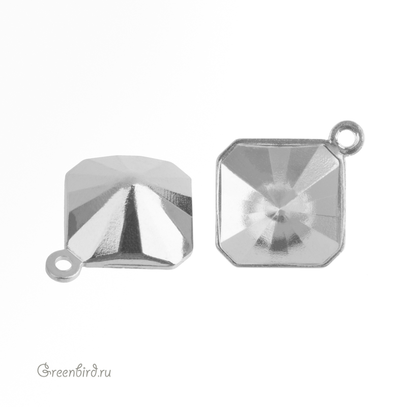 Оправа-подвеска для кристаллов Swarovski – 4499 Prismatic Square Fancy Stone. Размер: 10 мм, металл: томпак (разновидность латуни), покрытие: родий. Цена указана за 1 шт.