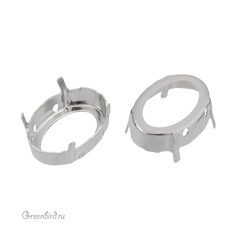 Оправа для овальных ювелирных кристаллов – 4120 Oval FS. Размер: 18 х 13 мм, высота боковой стороны (без лапок): 4,5 мм, отверстия: 1,1 мм. Материал: томпак (разновидность латуни), покрытие: белая бронза (white bronze, сплав меди с оловом и цинком). Производство: Германия. Цена указана за 1 шт.