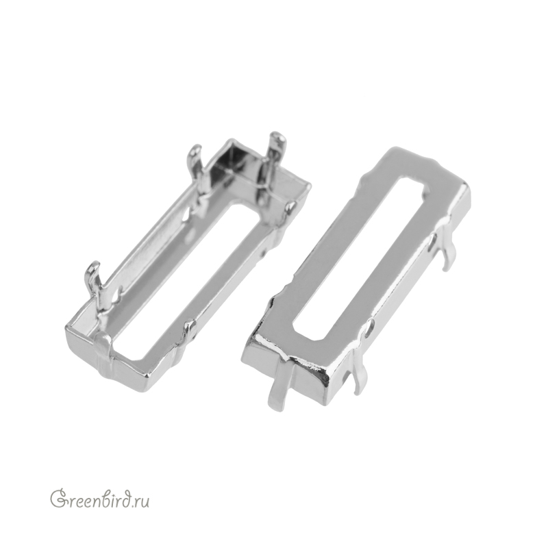 Оправа для ювелирных кристаллов – 4547 Princess Baguette FS. Размер: 15 х 5 мм, высота боковой стороны (без лапок): 3,1 мм, отверстия: 1,2 мм. Материал: томпак (разновидность латуни), покрытие: белая бронза (white bronze, сплав меди с оловом и цинком). Производство: Германия. Цена указана за 1 шт.