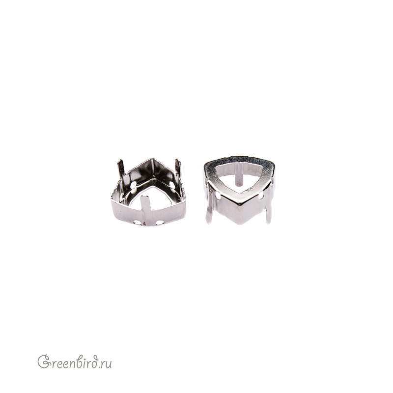 Оправа для ювелирных кристаллов – 4706 Trilliant Fancy Stone. Размер: 12 мм, высота боковой стороны (без лапок): 3,4 мм, отверстия: 0,9 мм. Материал: томпак (разновидность латуни), покрытие: белая бронза (white bronze, сплав меди с оловом и цинком). Производство: Германия. Цена указана за 1 шт.