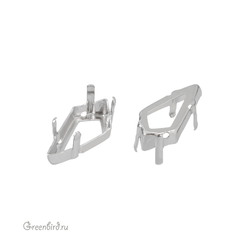 Оправа для ювелирных кристаллов – 4731 Kite Fancy Stone. Размер: 14 х 7 мм, высота боковой стороны (без лапок): 3,4 мм, отверстия: 0,8 мм. Материал: томпак (разновидность латуни), покрытие: платина. Производство: Германия. Цена указана за 1 шт.