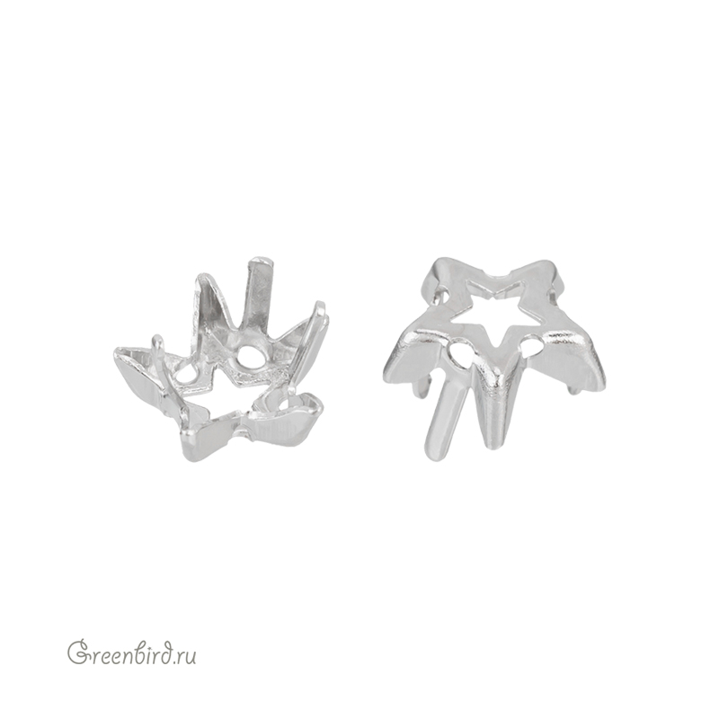 Оправа для ювелирных кристаллов – 4745 Star Fancy Stone. Размер: 10 мм, высота боковой стороны (без лапок): 3,3 мм, отверстия: 0,9 мм. Материал: томпак (разновидность латуни), покрытие: платина. Производство: Германия. Цена указана за 1 шт.