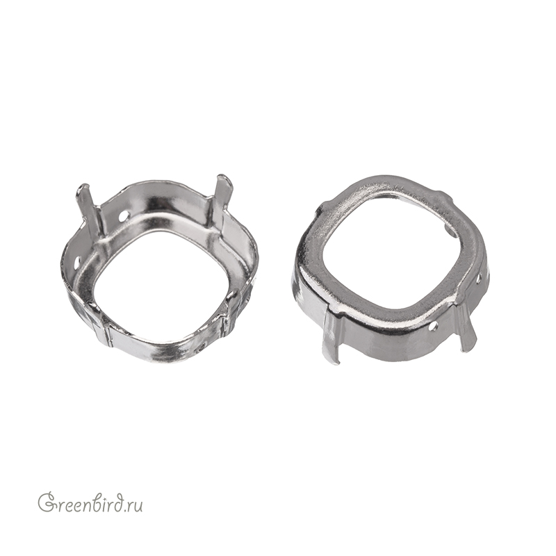 Оправа для ювелирных кристаллов Кушон Квадрат - 4470 Cushion Square Fancy Stone. Размер: 18 мм, высота боковой стороны (без лапок): 5,15 мм, отверстия: 0,9 мм. Материал: Материал: томпак (разновидность латуни), покрытие: белая бронза (white bronze, сплав меди с оловом и цинком). Производство: Германия. Цена указана за 1 шт.