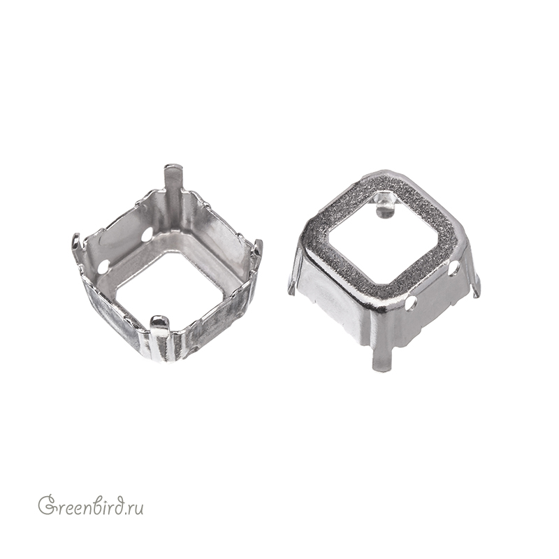 Оправа для ювелирных кристаллов Квадрат - 4480 Imperial Fancy Stone. Размер: 14 мм, высота боковой стороны (без лапок): 6,4 мм, отверстия: 0,8-1 мм. Материал: томпак (разновидность латуни), покрытие: белая бронза (white bronze, сплав меди с оловом и цинком). Производство: Германия. Цена указана за 1 шт.