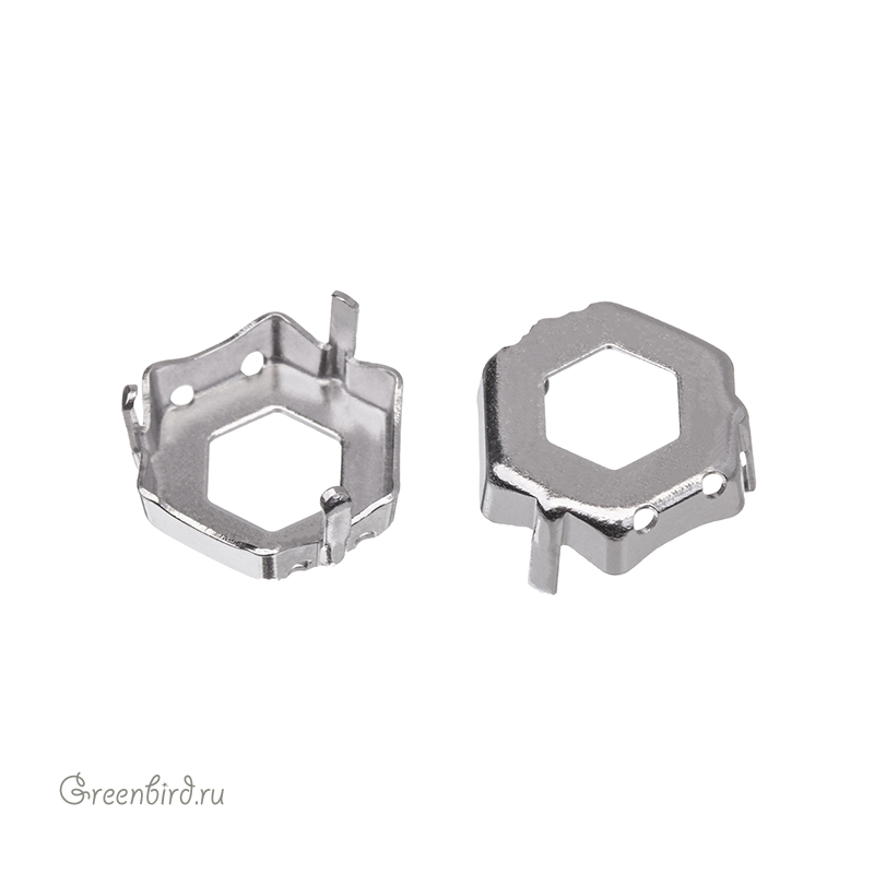 Оправа для ювелирных кристаллов - 4683 Thin Hexagon Fancy Stone. Размер: 12 х 13,5 мм, высота боковой стороны (без лапок): 3,4 мм, отверстия: 1 мм. Материал: томпак (разновидность латуни), покрытие: белая бронза (white bronze, сплав меди с оловом и цинком). Производство: Германия. Цена указана за 1 шт.