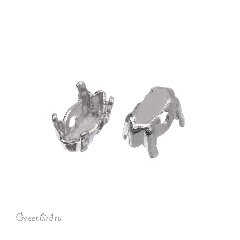 Оправа для ювелирных кристаллов Наветт - 4228 Navette FS. Размер: 5 х 2,5 мм, высота боковой стороны (без лапок): 1,9 мм, отверстия: 0,5 мм. Материал: томпак (разновидность латуни), покрытие: белая бронза (white bronze, сплав меди с оловом и цинком). Производство: Германия. Цена указана за 1 шт.