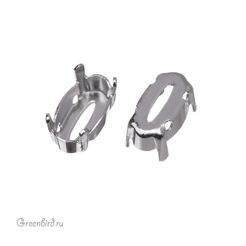 Оправа для овальных ювелирных кристаллов - 4162 Elongated Oval FS. Размер: 10 х 5,5 мм, высота боковой стороны (без лапок): 2,8 мм, отверстия: 1 мм. Материал: томпак (разновидность латуни), покрытие: белая бронза (white bronze, сплав меди с оловом и цинком). Производство: Германия. Цена указана за 1 шт.