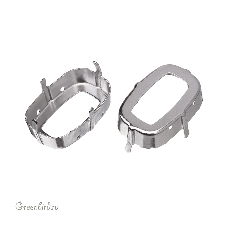 Оправа для ювелирных кристаллов - 4568 Cushion Fancy Stone. Размер: 27 х 18 мм, высота боковой стороны (без лапок) примерно 6,8 мм, отверстия: 1,1-1,3 мм. Материал: томпак (разновидность латуни), покрытие: белая бронза (white bronze, сплав меди с оловом и цинком). Производство: Германия. Цена указана за 1 шт.