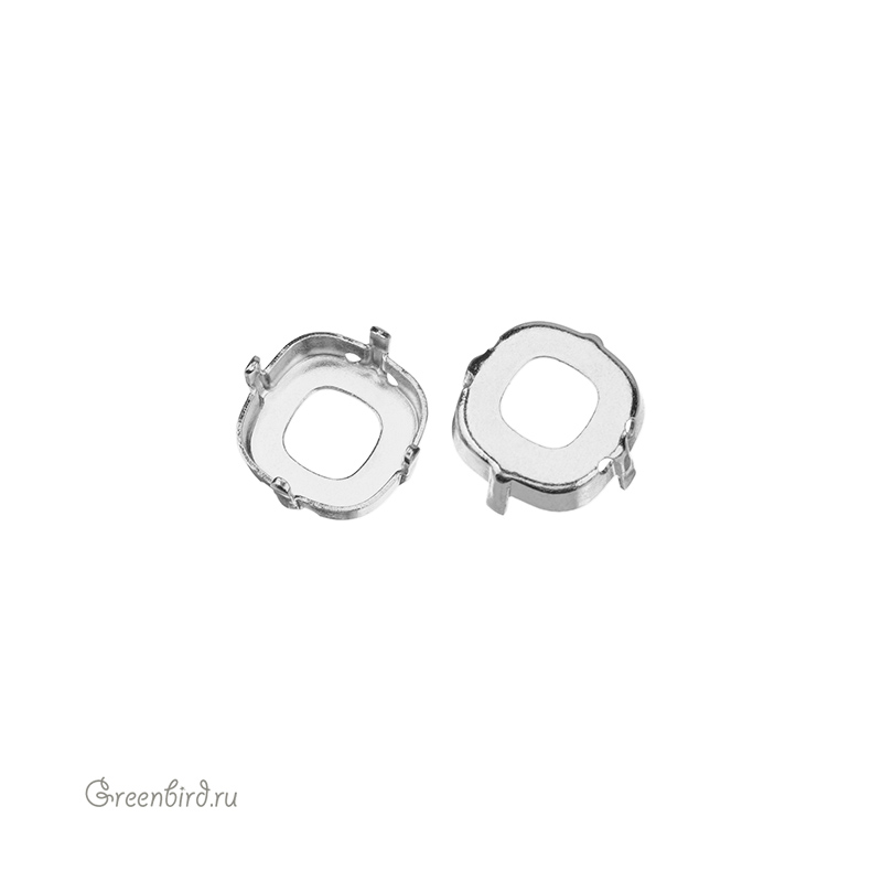 Оправа для ювелирных кристаллов Тонкий Кушон Квадрат - 4483 Thin Cushion FS. Размер: 12 мм, высота боковой стороны (без лапок): 3,5 мм, отверстия: 0,8 x 1,1 мм. Материал: томпак (разновидность латуни), покрытие: белая бронза (white bronze, сплав меди с оловом и цинком). Производство: Германия. Цена указана за 1 шт.