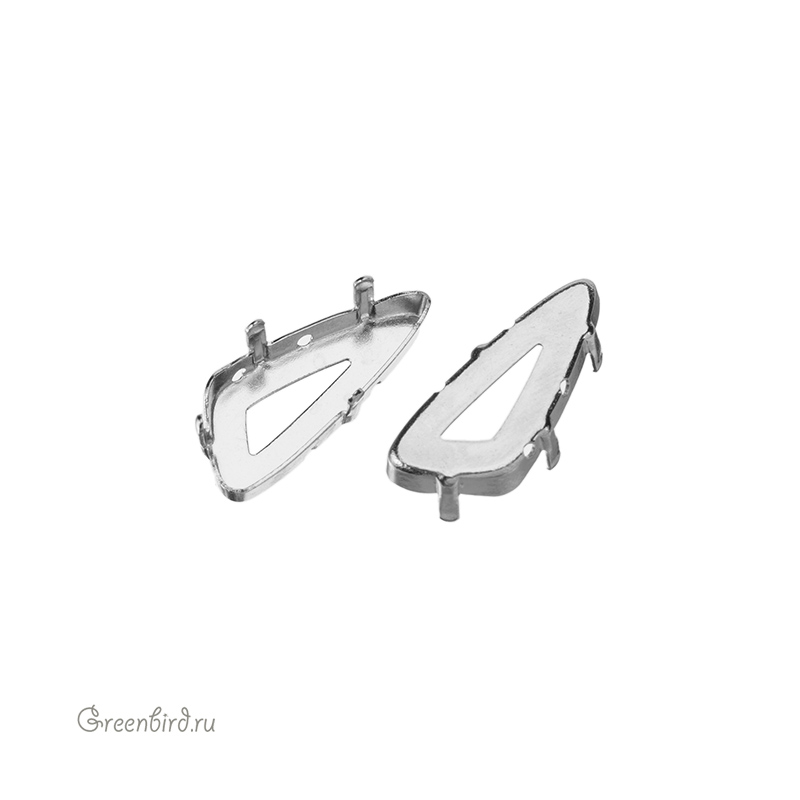 Оправа для ювелирных кристаллов – 4790 Wing Fancy Stone. Размер: 23 х 10 мм, высота боковой стороны (без лапок): 3,2-3,4 мм, отверстия: 1-1,2 мм. Материал: томпак (разновидность латуни), покрытие: белая бронза (white bronze, сплав меди с оловом и цинком). Производство: Германия. Цена указана за 1 шт.
