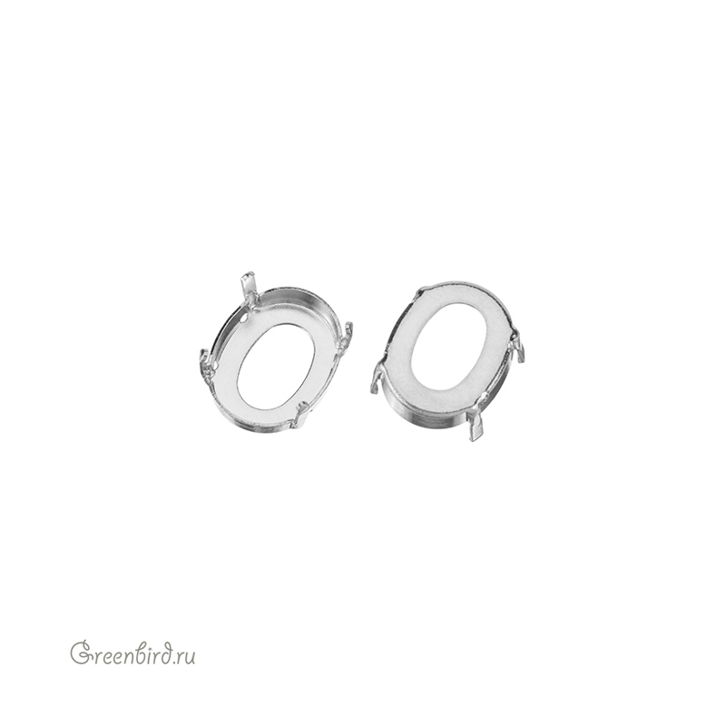 Оправа для овальных ювелирных кристаллов Риволи – 4142 Flat Oval Fancy Stone. Размер: 10 х 8 мм, высота боковой стороны (без лапок): ~ 3,3 мм, отверстия: 1,1-1,2 мм. Материал: томпак (разновидность латуни), покрытие: белая бронза (white bronze, сплав меди с оловом и цинком). Производство: Германия. Цена указана за 1 шт.