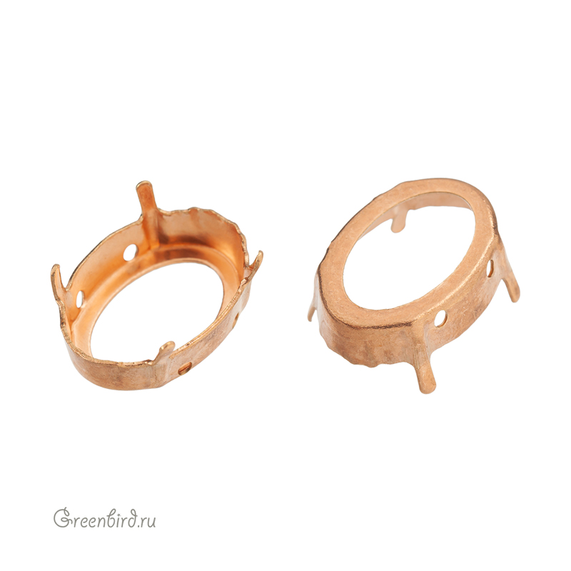 Оправа для овальных ювелирных кристаллов – 4120 Oval FS. Размер: 18 х 13 мм, высота боковой стороны (без лапок): 4,5 мм, отверстия: 1,1 мм. Материал: томпак (разновидность латуни), без покрытия. Технические, подходят для пайки. Допускается неоднородность цвета. В разных партиях цвет может варьироваться от светло-золотого к медному. Производство: Германия. Цена указана за 1 шт.