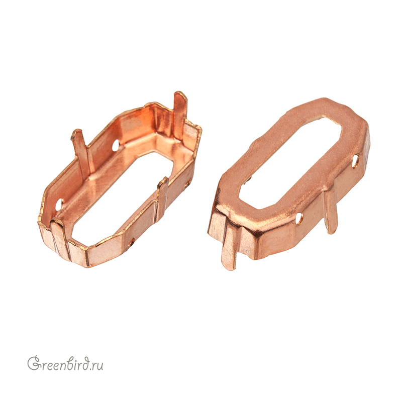Оправа для ювелирных кристаллов - 4595 Elongated Imperial FS. Размер: 20 х 10 мм, высота боковой стороны (без лапок): 4,6 мм, отверстия: 1,0-1,1 мм. Материал: томпак (разновидность латуни), без покрытия. Технические, подходят для пайки. Допускается неоднородность цвета. В разных партиях цвет может варьироваться от светло-золотого к медному. Производство: Германия. Цена указана за 1 шт.