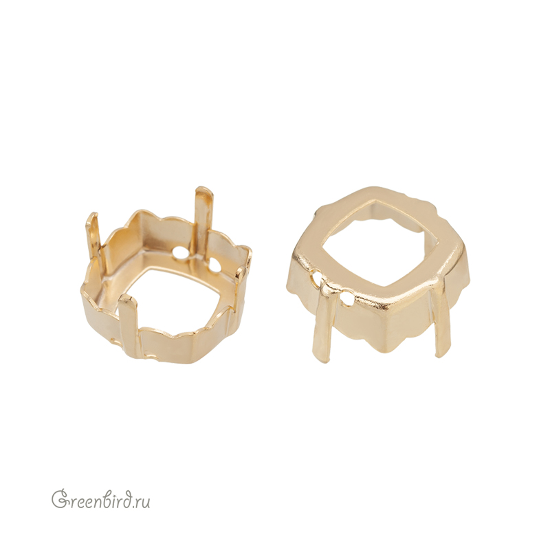 Оправа для ювелирных кристаллов Квадрат – 4460 Magical Square Fancy Stone. Размер: 14 мм, высота боковой стороны (без лапок): 5,2 мм, отверстия: 1,1-1,3 мм. Материал: томпак (разновидность латуни), покрытие: золото. Производство: Германия. Цена указана за 1 шт.