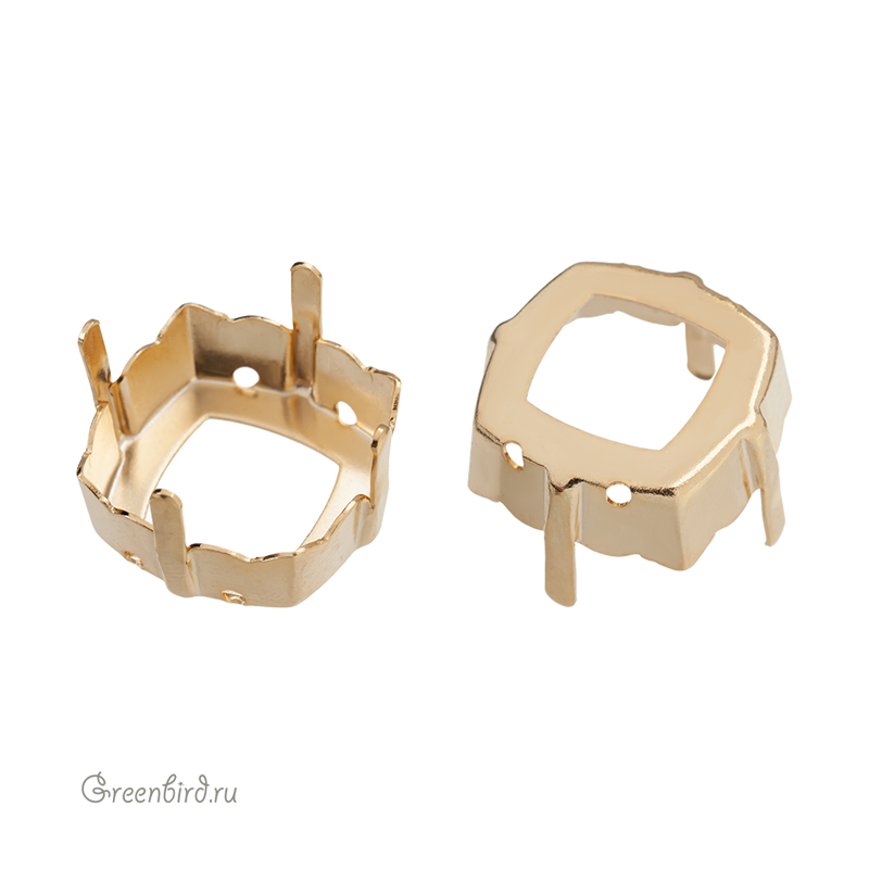 Оправа для ювелирных кристаллов Квадрат – 4460 Magical Square Fancy Stone. Размер: 18 мм, высота боковой стороны (без лапок): 6,9 мм, отверстия: 1,1-1,3 мм. Материал: томпак (разновидность латуни), покрытие: золото. Производство: Германия. Цена указана за 1 шт.