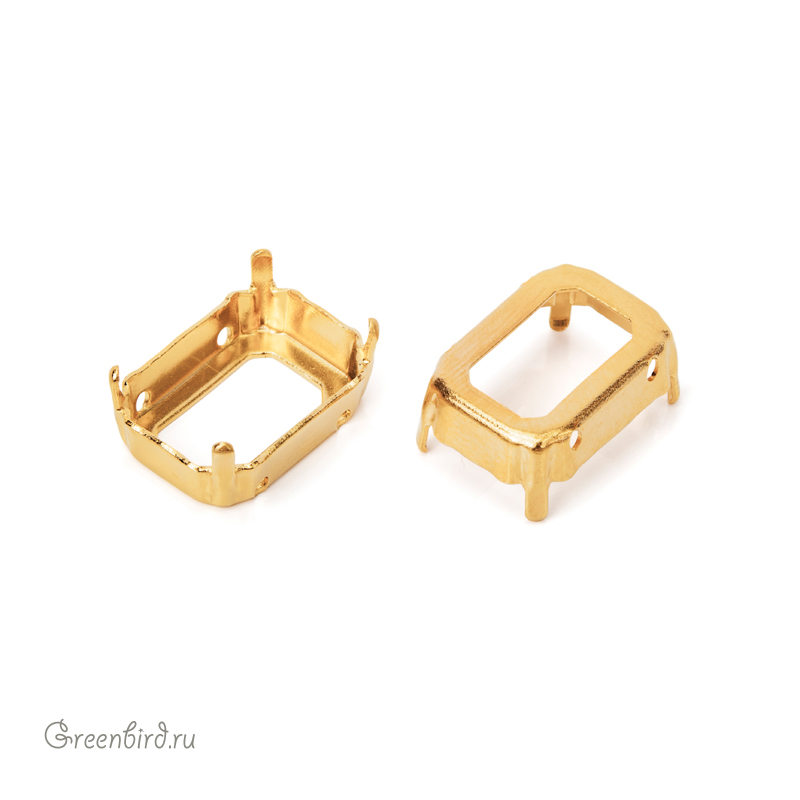 Оправа для ювелирных кристаллов – 4610 Octagon Fancy Stone. Размер: 14 х 10 мм, высота боковой стороны (без лапок): 3,9 мм, отверстия: 1,2-1,3 мм. Материал: томпак (разновидность латуни), покрытие: золото. Производство: Германия. Цена указана за 1 шт.