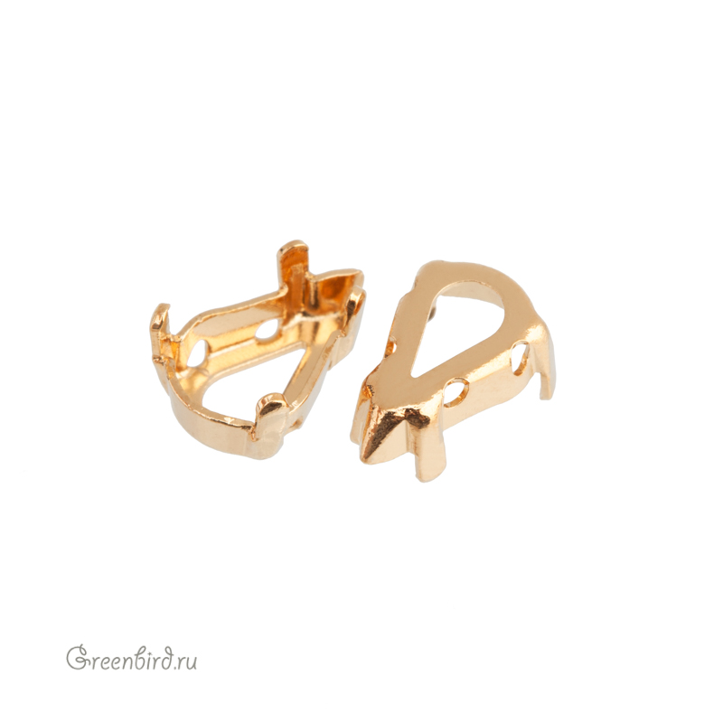 Оправа для ювелирных кристаллов Капля (Груша) – 4328/4300 Pear-Shaped Fancy Stone. Размер: 10 х 6 мм, высота боковой стороны (без лапок): 3,1 мм, отверстия: 1,1 мм. Материал: томпак (разновидность латуни), покрытие: золото. Производство: Германия. Цена указана за 1 шт.