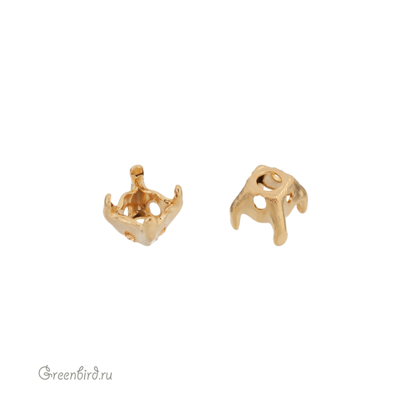 Оправа для ювелирных кристаллов – 1088 Chaton. Размер: SS18/19 (4,3-4,5 мм), высота боковой стороны (без лапок): 2,6-2,7 мм, отверстия: 0,8 мм. Материал: томпак (разновидность латуни), покрытие: золото. Производство: Германия. Цена указана за 1 шт.