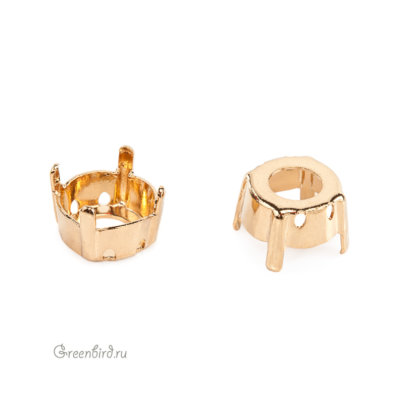 Оправа для ювелирных кристаллов – 1088 Chaton. Размер: SS45 (10 мм), высота боковой стороны (без лапок): 4,17-2,25 мм, отверстия: 0,9 мм. Материал: томпак (разновидность латуни), покрытие: золото. Производство: Германия. Цена указана за 1 шт.