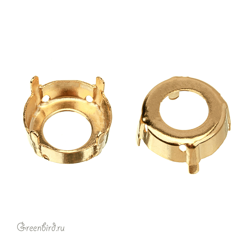 Оправа для круглых ювелирных кристаллов Риволи - 1122 Rivoli. Размер: 14 мм, высота боковой стороны (без лапок): 4,45 мм, отверстия: 1 мм. Материал: томпак (разновидность латуни), покрытие: золото. Производство: Германия. Цена указана за 1 шт.
