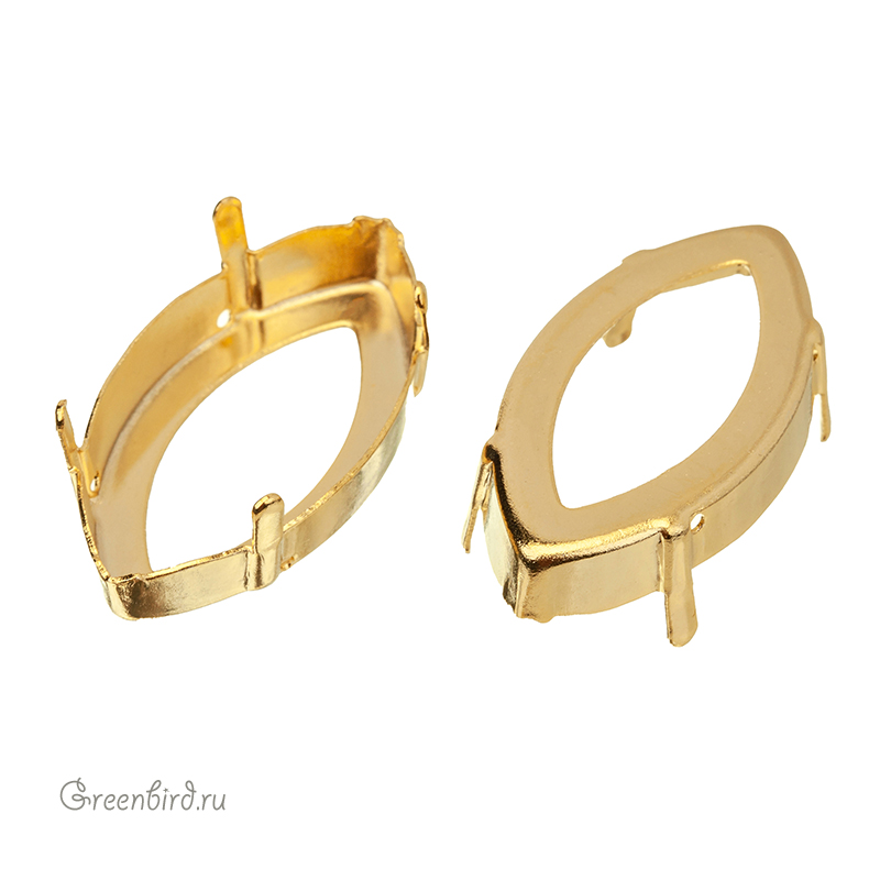 Оправа для ювелирных кристаллов Наветт - 4227 Navette FS 32х17 мм. Высота боковой стороны (без лапок): 5,1 мм, отверстия: 0,9 мм. Материал: томпак (разновидность латуни), покрытие: золото. Производство: Германия. Цена указана за 1 шт.