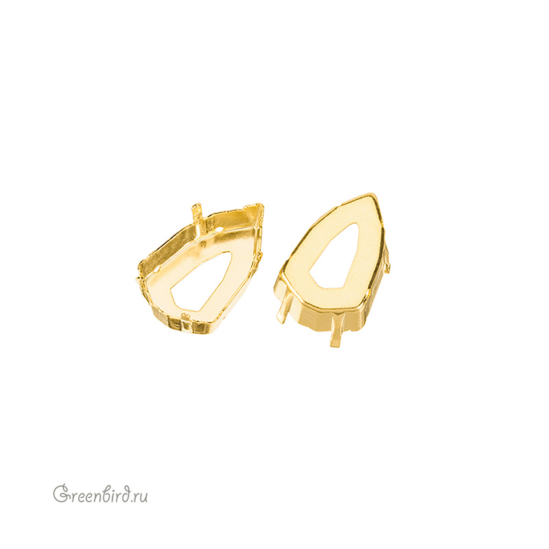 Оправа для ювелирных кристаллов – 4707 Slim Trilliant FS. Размер: 13,6 х 8,6 мм, высота боковой стороны (без лапок): 4,1 мм, отверстия: 1,1 мм. Материал: томпак (разновидность латуни), покрытие: золото. Производство: Германия. Цена указана за 1 шт.