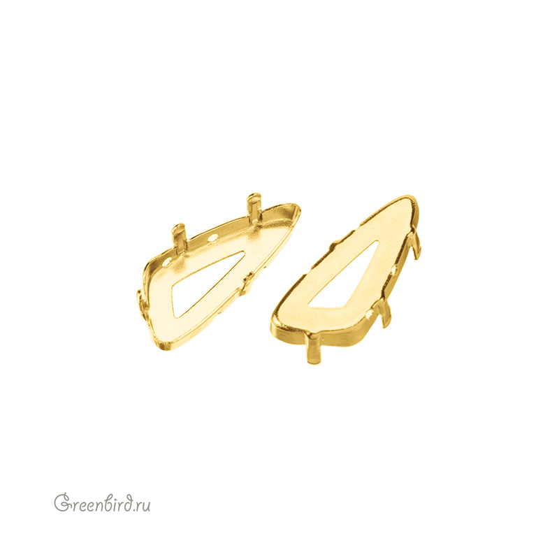 Оправа для ювелирных кристаллов – 4790 Wing Fancy Stone. Размер: 23 х 10 мм, высота боковой стороны (без лапок): 3,4 мм, отверстия: 1-1,2 мм. Материал: томпак (разновидность латуни), покрытие: золото. Производство: Германия. Цена указана за 1 шт.