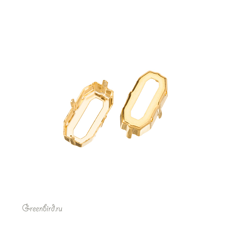 Оправа для ювелирных кристаллов - 4595 Elongated Imperial FS. Размер: 20 х 10 мм, высота боковой стороны (без лапок): 4,6 мм, отверстия: 1,0-1,1 мм. Материал: томпак (разновидность латуни), покрытие: золото. Производство: Германия. Цена указана за 1 шт.