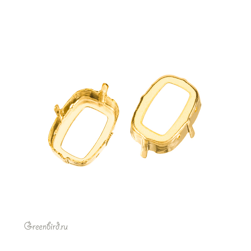 Оправа для ювелирных кристаллов – 4568 Cushion Fancy Stone. Размер: 18 х 13 мм, высота боковой стороны (без лапок): 5,1 мм, отверстия: 1,1 мм. Материал: томпак (разновидность латуни), покрытие: золото. Производство: Германия. Цена указана за 1 шт.